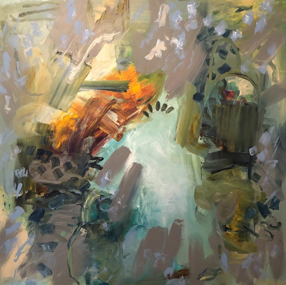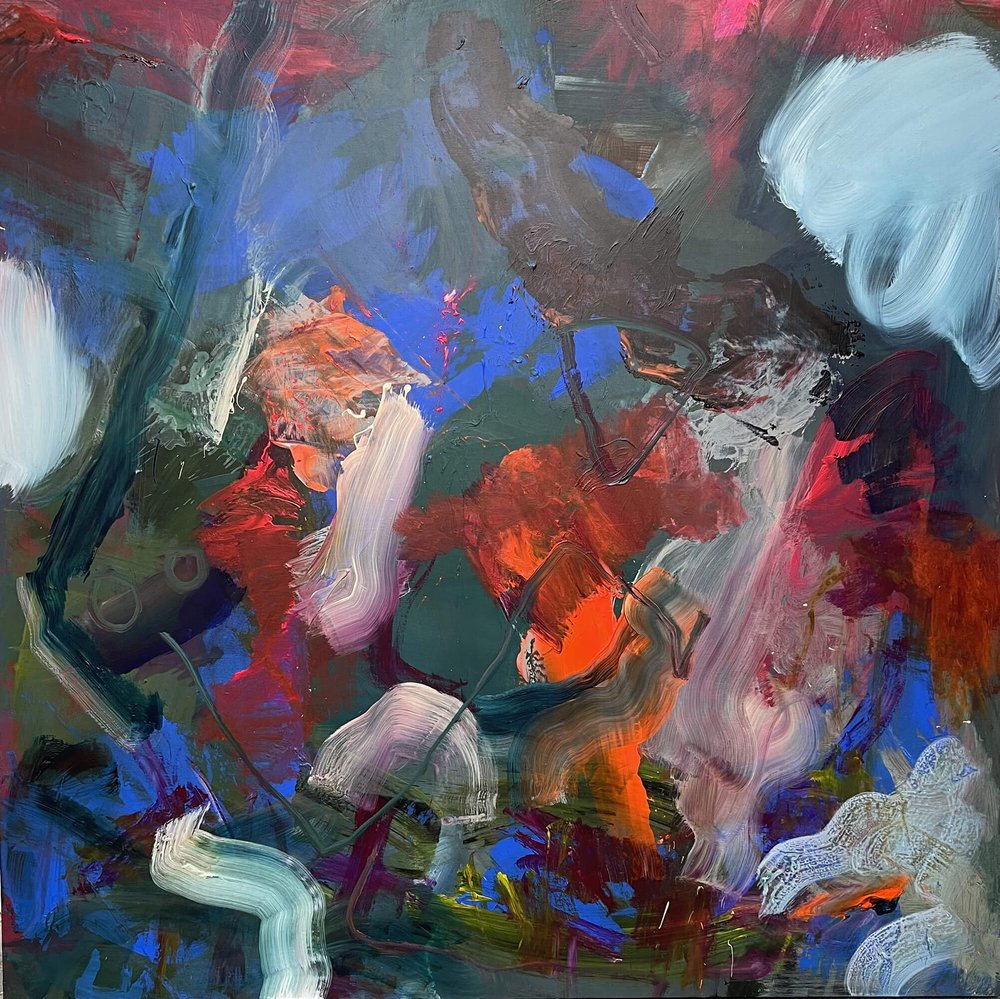 Acrylic on canvas framed behind glazing
